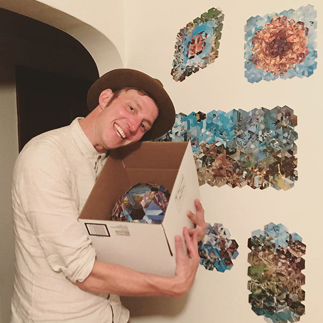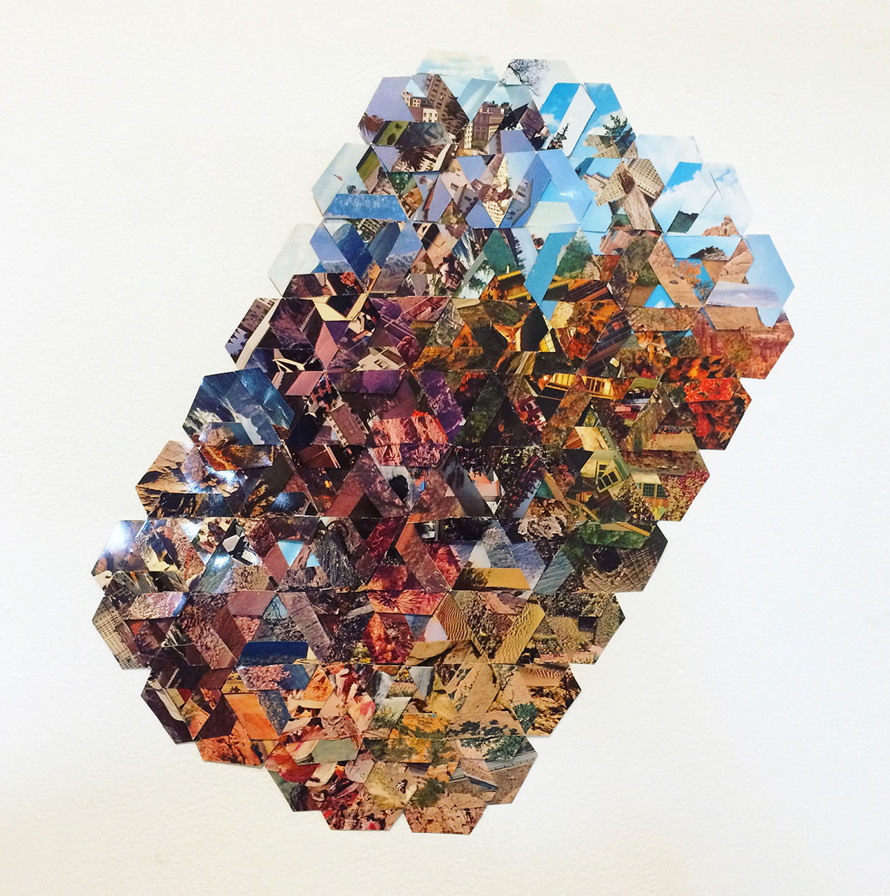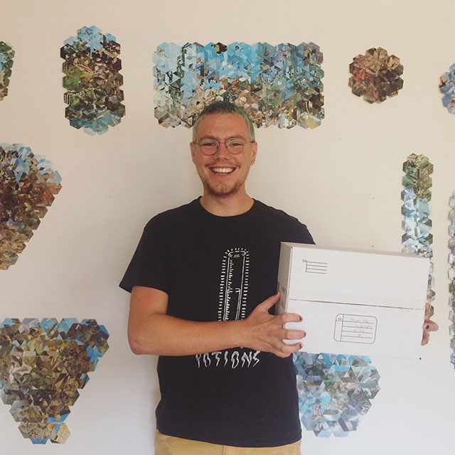 Project director Shaun Kardinal and twelve writers presented a physical transformation of words, where geometric forms reshaped vibrant landscape postcards, each containing letters, hand-written with intention.